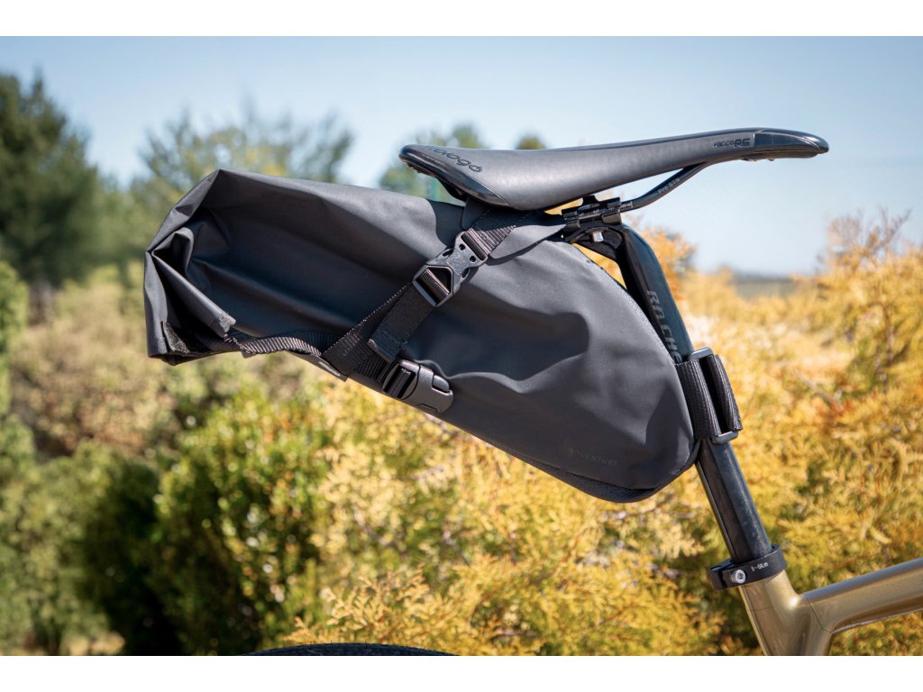 Brašnu pro cykloturistiku „Adventure“ můžete díky pevným popruhům spřezkami snadno nainstalovat pod sedlo a na sedlovku, nebo z kola lehce sejmout.