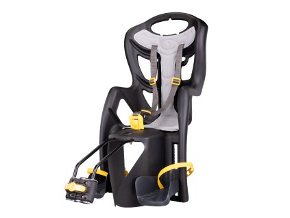 Samonosná dětská sedačka, nový speciální držák určený pro malé rámy a 29" kola, tříbodový pás, podélně posuvná, montáž na sedlovou rámovou trubku oválného i kulatého...