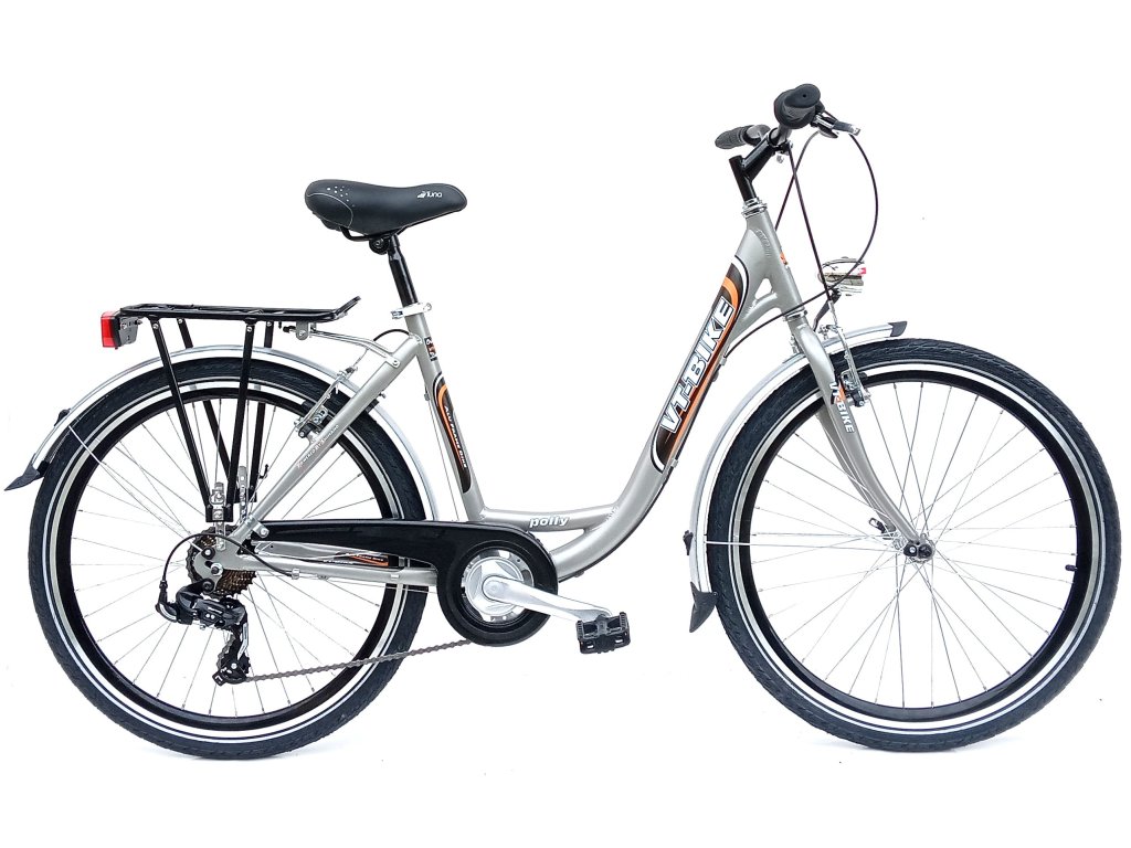 Městské kolo VT-BIKE s elegantním designem, pevnou vidlicí, 26“ koly a upraveným rámem pro velmi pohodlné nastupování.